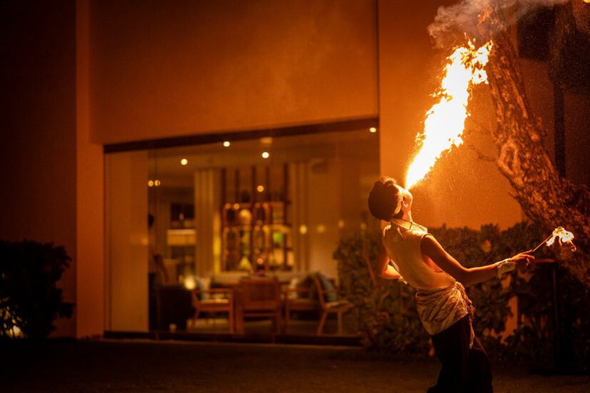 The evening unfolded with a Balinese dance performance, followed by a captivating fire show and live music from a full five-piece band.