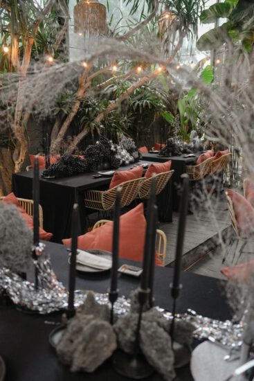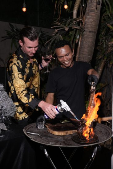 Set in a private garden area, the space was transformed with avant-garde décor in silver, black, and red, creating a bold and stylish atmosphere. Guests enjoyed Belvedere vodka, a live steak station, and a curated menu that elevated the evening.